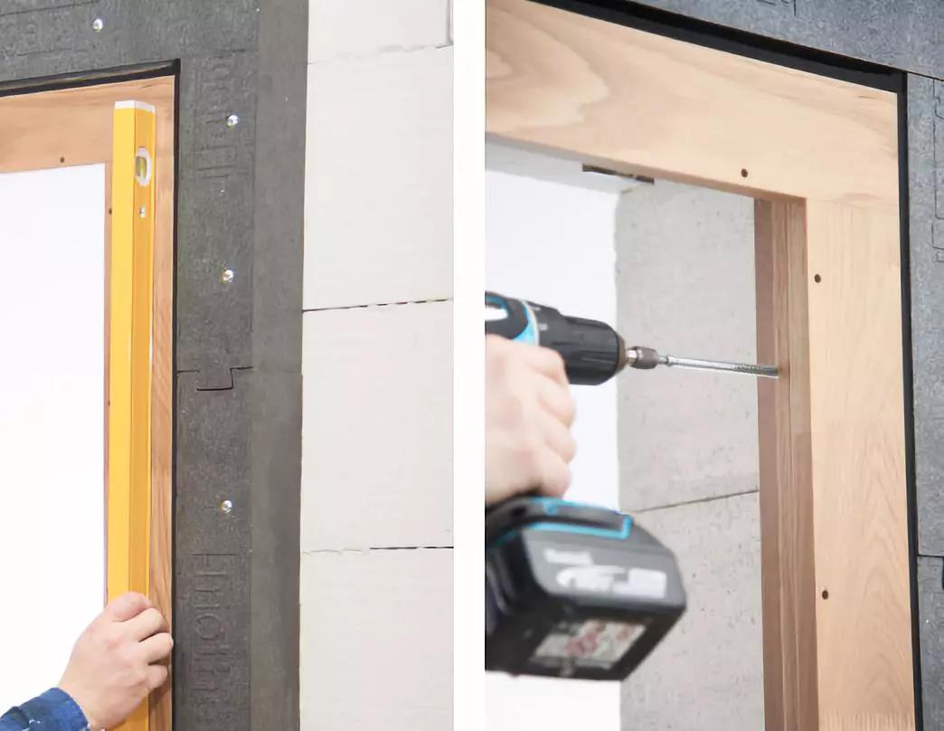 ⑥校準(zhǔn)窗框,無(wú)誤后使用專用螺釘從室內(nèi)連接附框和窗框。